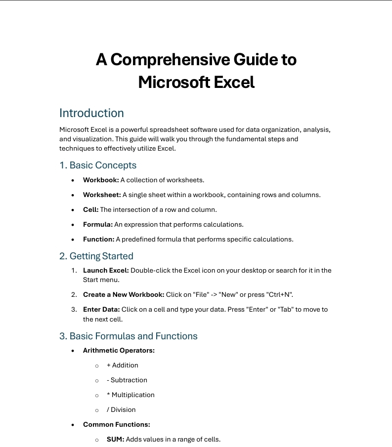 Unlock the full potential of Microsoft Excel with this comprehensive beginner-friendly guide! Perfect for students, professionals, and anyone eager to streamline data management, this digital product covers everything from foundational concepts (workbooks, cells, formulas) to advanced techniques like pivot tables, VLOOKUP, and macros. Learn to: